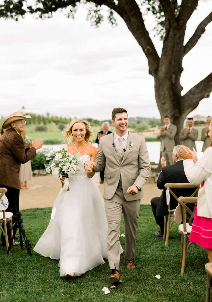 Shasta and Luke said “I DO” on the gorgeous property of Saureel Vineyards in California. The ceremony took place outdoors under a huge oak tree with minimal white and green florals that radiated simplistic elegance. In addition the bride and groom chose champagne and khaki for the bridesmaids and groomsmen attire that complimented beautifully.